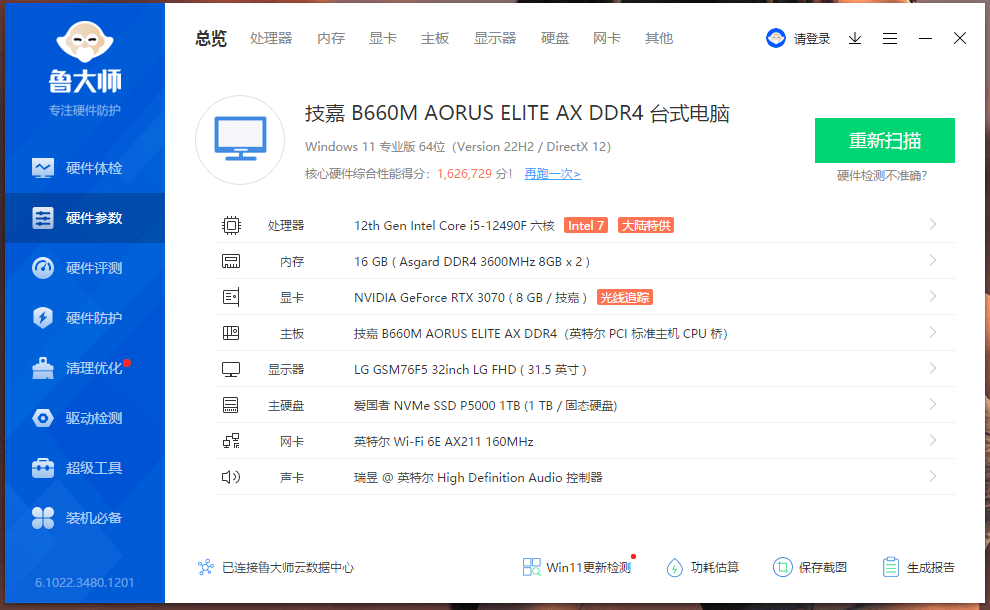為了省事,我就不單獨(dú)介紹配置了。這里就直接使用魯大師給大家展示了!