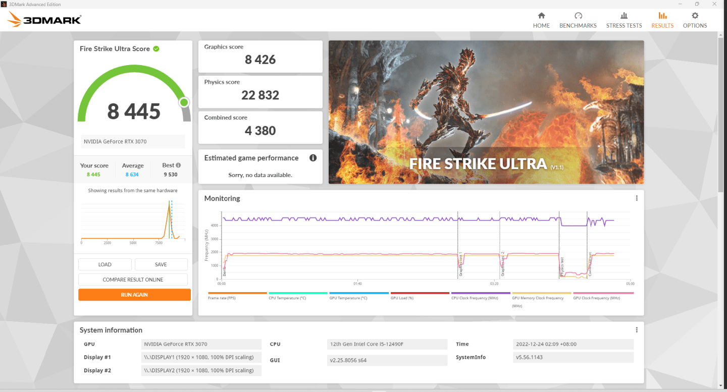 Fire Strike Ultr中,還有著8445的分?jǐn)?shù)。顯卡分?jǐn)?shù)則為8426.