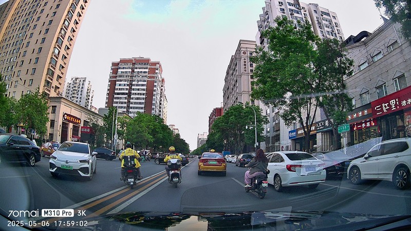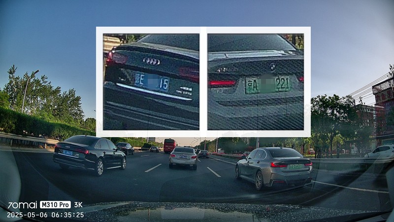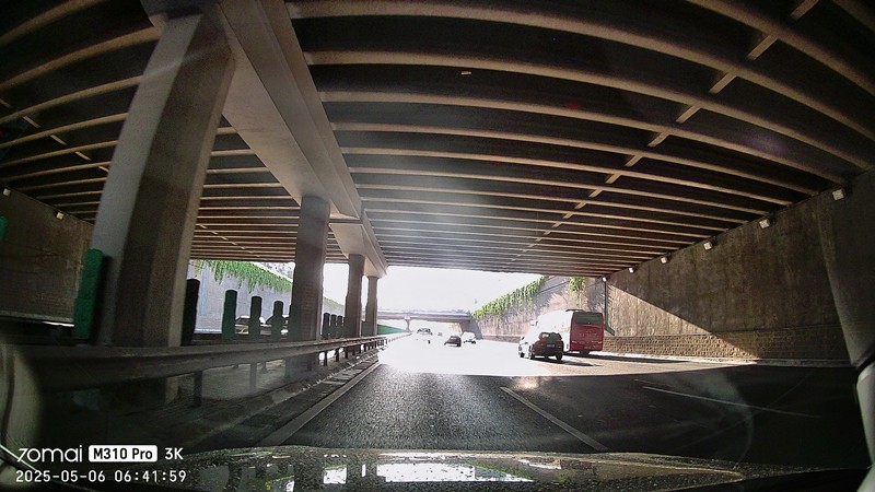 上圖是北京早晨6點多的北四環(huán)西向東方向,太陽剛剛升起,接近于直射的角度讓畫質(zhì)和細節(jié)有所下降;我特意在通過橋區(qū)時抓拍了幾張照片,這種突然由暗到亮或者由亮到暗的極端光照環(huán)境非??简炗涗泝x的感光控制,M310 Pro3K能很快適應(yīng)光線的極速變化并及時調(diào)整畫面,沒有出現(xiàn)那種瞬間黑屏或者大白屏的情況,這點我非常滿意。