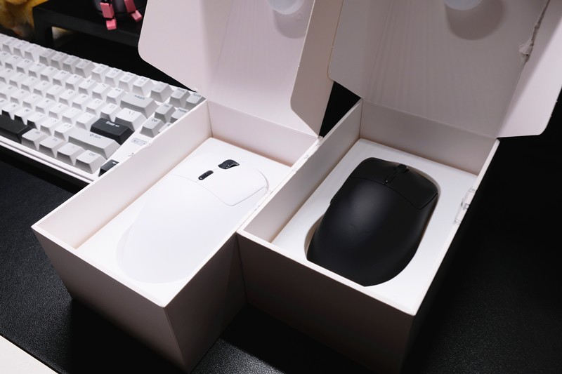 今年稍早些時候雷柏推出了VT3和VT3 MAX兩款鼠標,作為該系列第二代迭代產品,它們較前代產品有那些變化,又有哪些得到了繼承呢,我手上這款皎月白是VT3,而星空黑是VT3 MAX,兩者拋開顏色上的差別,其余可以說是一模一樣,也就是說模具相同。