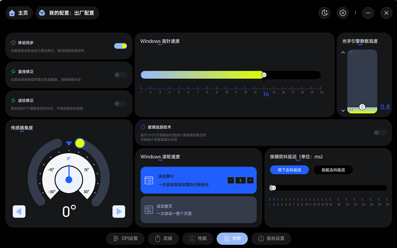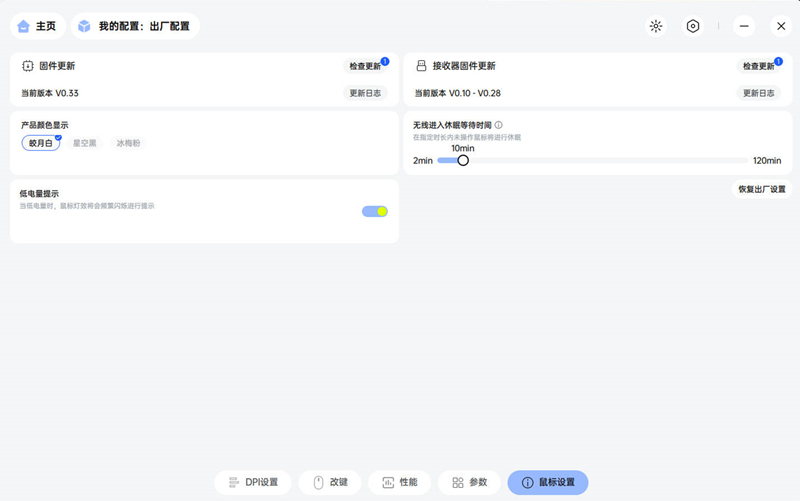 雷柏這次在驅動方面也下足了功夫,A Hub驅動界面簡潔易用,提供了豐富選項。通過驅動,玩家可對鼠標的 DPI、回報率、靜默高度等進行個性化設置,10個可編程按鍵(9基礎鍵+底部DIY鍵),支持宏錄制與一鍵連招,鼠標和Nano接收器的固件也能在此升級。